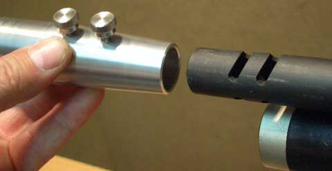 Cada caso puede ser distinto y en la Walther es así. El cañón está dentro de un tubo que hace de funda y que se prolonga varios centímetros más que el propio cañón. Esto hace que adaptar un silenciador sea más difícil que en otros casos puesto que, por lógica, cuanto más lejos de la boca del cañón esté el silenciador más posibilidades de que se vea afectado por cualquier descentramiento, y más aún si la sujeción se ha de hacer sobre esta pieza intermedia que, como digo, hace de funda.